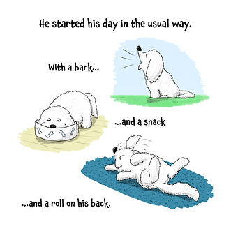 I based the character on my own dog (who is coincidentally also a white, fluffy dog called Colin). More books in the series are planned, including stories about an unwelcome visitor and a scuffle with the local cat.